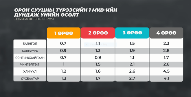 Жил бүр орон нутгаас нийслэлд 50-80 мянган оюутан ирж суралцдаг ч оюутны байрны хүртээмж хангалтгүй байдгаас байр түрээслэх хэрэгцээ үүсдэг. Нийслэлд 255 мянган айлын орон сууц байдаг. Үүний 10 орчим хувь түрээсийнх. Жил бүрийн наймдугаар сар түрээсийн орон сууцны зах зээлийн хамгийн оргил эрэлттэй үе байдаг. Учир нь их дээд сургуульд сурахаар орон нутгаас ирсэн, хотод амьдрах хамаатан садангүй оюутнууд дотуур байранд орж чадаагүй бол орон сууц, нийтийн байр, хашаа байшин түрээслэх хэрэгцээ үүсдэг. Нөгөө талд түгжрэлтэй холбоотойгоор хүүхдийнхээ сургууль цэцэрлэгийн хажууд байр түрээслэх хүсэлтэй иргэдийн тоо нэмэгдсэн нь орон сууцны түрээсийн үнэ өсөх шалтгаан болж байна. Гэвч зах зээлд түрээслэж байгаа орон сууцны нийлүүлэлт эрэлтээ хангадаггүй байна. Энэ жил түрээсийн орон сууцны үнэ байршлаасаа шалтгаалаад 25-45 хувиар өсжээ. Тухайлбал, нэг өрөө орон сууцны түрээсийн дундаж үнэ 690 мянган төгрөгөөс 1.3 сая төгрөг байна.
