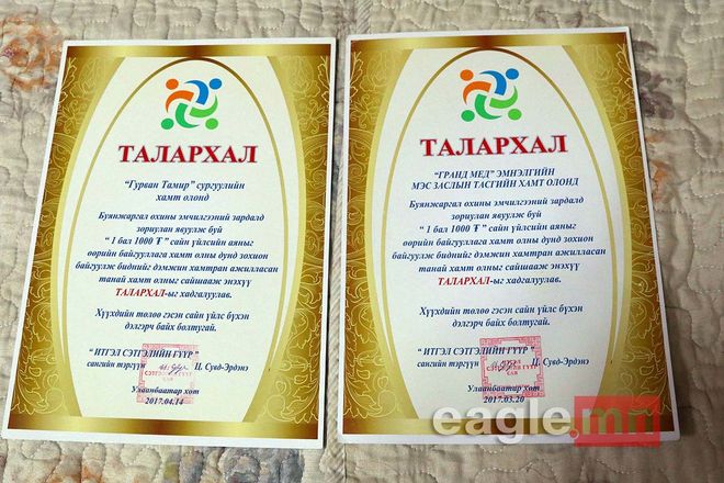 -Таныг төрснийхөө дараа маш их сэтгэлээр унаж, хямарсан тухай А.Шаравдорж ах ярьж байна лээ. Одоо та нар нэг үеэ бодвол охиноо эмчлүүлэх боломжтой гэдгийг сонсоод зогсохгүй эмчилгээнд нь шаардлагатай мөнгийг ч цуглуулаад эхэлчихэж. Манай монголчууд маш сайхан өглөгч сэтгэлтэй ард түмэн шүү. Бидний ярилцлагыг сайхан сэтгэлтэй олон хүн уншина. Удахгүй охиных нь эмчилгээний зардал цугларна гэдэгт итгэж байна. Харин та сэтгэлийн тэнхээтэй байгаарай?
