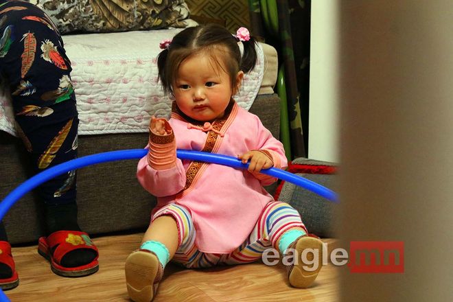 -Эмч нар анх наркоз даах чадвартай буюу ой таван сартай болохоор нь хагалгаанд оруул гэж байсан. Харин охин маань одоо хөл дээрээ тэнцвэрээ олох гэж оролддог болсон болохоор эмч нар “Урнаа минь хүүхдээ яаралтай хагалгаанд нь оруул. Яаралтай хөлийнх нь тавхайг нийлүүлж оёулбал хөл дээр зогсож, хөлд орох юм байна” гэж хэлсэн.