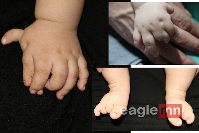 -Охин маань одоо ГССҮТ-ийн Гар сарвуу, бичил мэс заслын тасгийн их эмч н.Баатаржав хяналтад байдаг. н.Баатаржав эмчийн хэлснээр охины маань онош манайд анх удаа бүртгэгдээд байгаа нь энэ юм билээ. Манайд эмчлэх боломжгүй, гадаадад хагалгаанд орох шаардлагатай гэсэн. Таны хэлснээр нэг гартаа илүү эсвэл дутуу хуруутай, нэг хөлөндөө илүү эсвэл дутуу хуруутай. Гар, хөлөндөө илүү, дутуу хуруутай байх тохиолдол байдаг гэсэн.