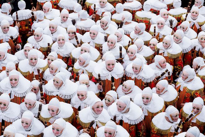 БЕЛЬГИ: Бинш хотноо болсон Марди Гра багт наадам. Их мацаг барилтын өмнө болдог уг наадмыг ЮНЕСКО дэлхийн соёлын өвд оруулжээ.