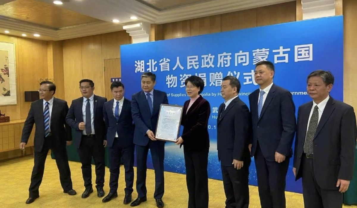 БНХАУ-ын Хубэй мужийн ардын Засгийн газар Монгол Улсад эм, эмнэлгийн хэрэгсэл, шахмал цай хандивлажээ. Хандивын барааг гардуулан өгөх ёслол мягмар гаригт мужийн нийслэл Ухань хотноо болсон байна.