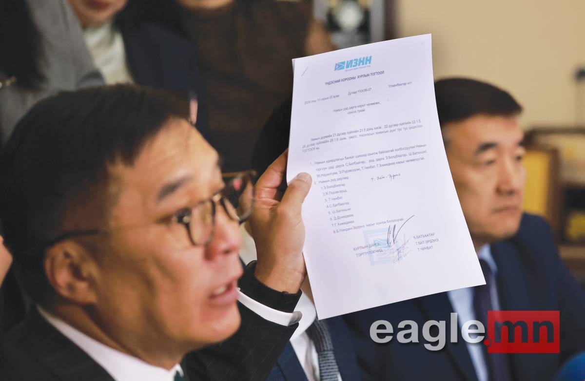Тэгвэл Б.Батбаатар гишүүн энэ талаар “Намын эрх мэдлийг хууль бусаар авах, ИЗНН-ыг “хүүхэлдэй” болгох оролдлого хийж байна. Энгийн гишүүдийг төөрөгдүүлж, намын нэрийг ашиглахыг зөвшөөрөхгүй. ИЗНН хэн нэгний улс төрийн хэрэгсэл биш. Бид бизнес, улс төрийн бүлэглэлийнхний захиалгаар ажиллахгүй, хэн нэгний захиалсан хүнийг Ерөнхийлөгчийн сонгуульд нэр дэвшүүлэхгүй, үзэл баримтлалдаа үнэнч байна, зарчмаа худалдахгүй” гэсэн тайлбар хийсэн. Мөн Дээд шүүхийн бүртгэлд тэр өөрөө ИЗНН-ын дарга хэвээр, үндсэн дүрэм нь ч хүчин төгөлдөр гэдгийг онцолжээ. Тиймээс намыг нь хагалан бутаргах оролдлого хийж буй хүмүүст Дүрмийн хороогоороо дамжуулан арга хэмжээ авна гэсэн юм. Мөн “Удирдах зөвлөлд нь л 2-3 ах, дүү нь бий, эзэлсэн юм байхгүй” гэсэн тайлбарыг ч өмнө нь хэлж байв. Ямартай ч тус намын төлөөллийн төв байгууллага болох Үндэсний зөвлөл нь хуралдахаар болжээ. Үүгээр тэд “үймээн дэгдээгчдэд” хариуцлага тооцох, дотроо үүсээд буй зарим үл ойлголцлоо шийдэхээр төлөвлөжээ.