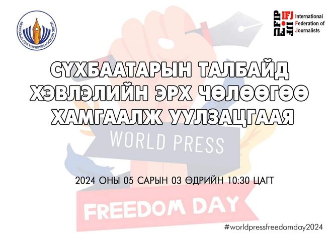НҮБ-ын Ерөнхий ассамблейн шийдвэрээр 1993 онд жил бүрийн тавдугаар сарын 3-ны өдрийг Дэлхийн хэвлэлийн эрх чөлөөний өдөр болгон 1994 оноос тэмдэглэсээр ирсэн юм. Энэ өдөр хэвлэлийн эрх чөлөөний ач холбогдлыг олон нийтэд сурталчлан ойлгуулах, улс орнуудын төр, засагт иргэд олон нийтийн үзэл бодлоо илэрхийлэх эрхийг хүндэтгэх үүргийг сануулах, мөн ажил үүргээ гүйцэтгэж яваад амиа алдсан сэтгүүлчид, хэвлэл мэдээллийн салбарын ажилтнуудыг дурсан хүндэтгэдэг юм. Тиймээс энэ өдрийг тохиолдуулан Монголын Сэтгүүлчдийн нэгдсэн эвлэлээс цуглаан зохион байгуулах гэж байна. Цуглаан өнөөдөр 10.30 цагт Сүхбаатарын талбайд болно. "Хэвлэлийн эрх чөлөө боогдлоо" цуглаанд хүрэлцэн ирж, хамтдаа асуудлаа ярьж, шийдлээ зөвлөлдөхийг МСНЭ-ээс уриаллаа.
