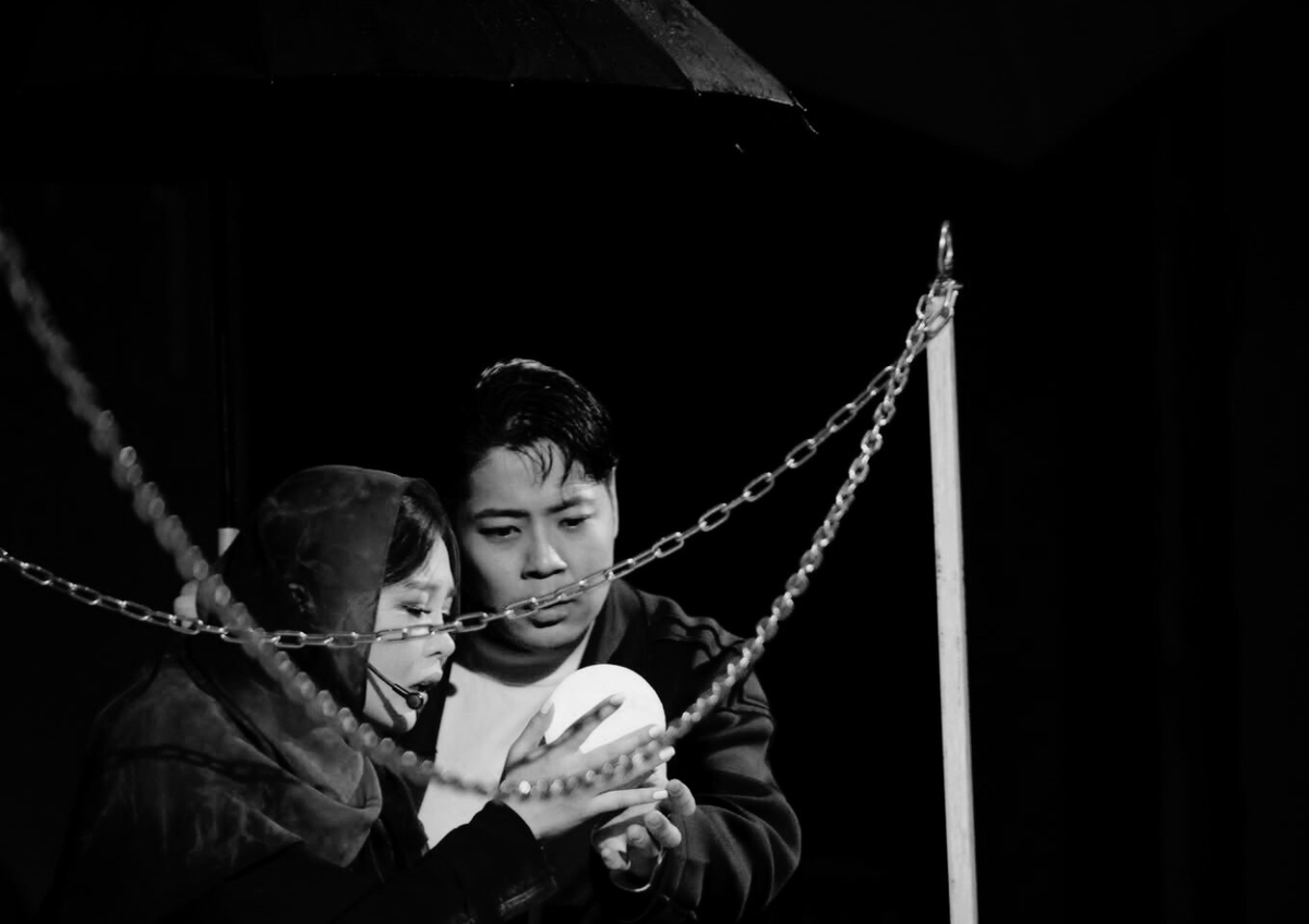 Аливаа бүхэнд эхлэл бий. Гэвч тэрхүү эхлэл бол өмнөх үйл явдлын үргэлжлэл. Учир нь нэгэн хэвийн үргэлжилсэн урт цаг хугааны гүнд эхлэл, төгсгөл гэж зааглаж болох учрал, хагацалууд өөрөө агшинг тодорхойлно. Тийм л болзолт үйлээс, Отгоолойгийн эхнэр, хүүхдээсээ хагацахаас жүжгийн үйл явдал эхэлж байна. Тэнд харин дүрүүдийн дотоод дахь хоосон орон зайд үгүйлэгдэж байгаа хайр бий. Хайр бол бэлгэдэл. Үүнийг гэрлээр орлуулжээ. Дүрүүдийн гартаа атгасан гэрэлтдэг бөмбөлөг. Заримдаа энэ хайр хүний амьдралын итгэл найдвар болно.