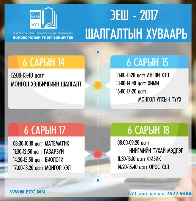 -"ЭЕШ-2017" шалгалтын хуваарийг танилцуулж байна-