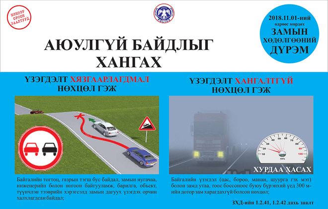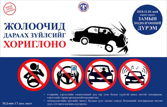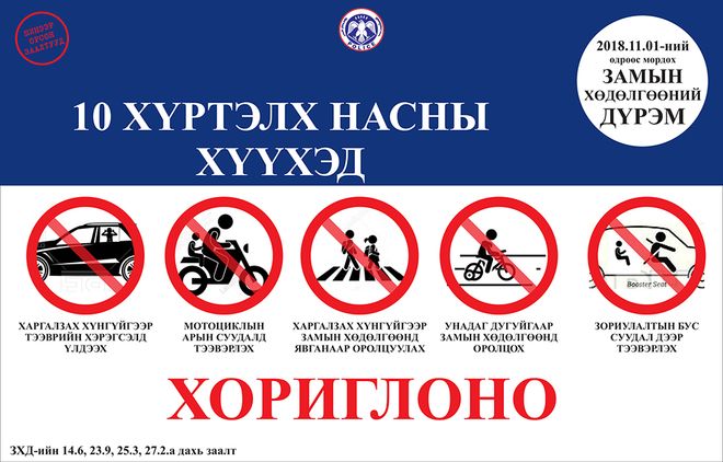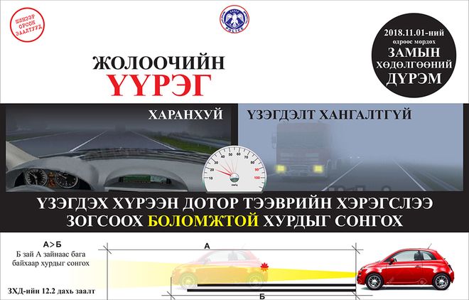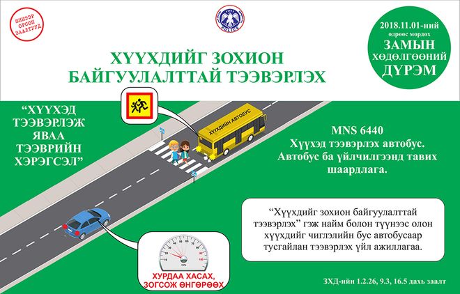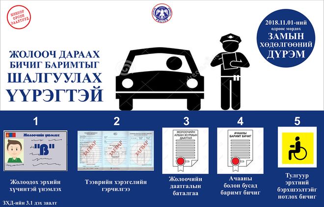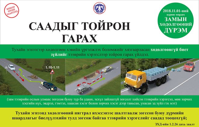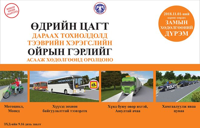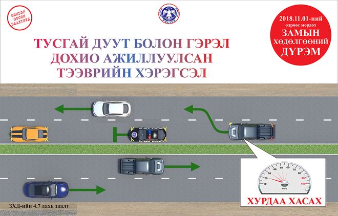 Маргаашнаас Замын хөдөлгөөний шинэчилсэн дүрмийг мөрдөж эхэлнэ. Дүрэмд зам, тээврийн осол, хэрэг, тээврийн хэрэгслийн хурдаас шалтгаалсан ослыг бууруулах, жолооч, явган зорчигчийн амь насыг хамгаалах, хүүхдийг зам, тээврийн осолд өртөхөөс хамгаалах, хөгжлийн бэрхшээлтэй иргэд замын хөдөлгөөнд аюул, бэрхшээлгүй оролцох нөхцлийг хангах, түгжрэлийг багасгах зэрэг чиглэлээр нэмэлт, өөрчлөлт оруулсан байна.