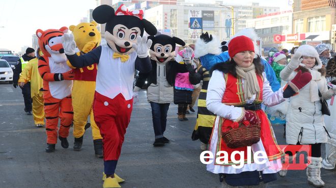 Баянгол дүүрэг жил бүр 100 өвлийн өвгөн, цасан охид, үлгэрийн баатруудын парадыг зохион байгуулдаг уламжлалтай. Парадын үйл ажиллагаанд дүүргийн хэмжээнд үйл ажиллагаа явуулж байгаа төрийн болон төрийн бус байгууллага, ерөнхий боловсролын сургууль, цэцэрлэг, 23 хорооны төлөөллүүд оролцдог бөгөөд энэ жил 13 сургууль, 31 цэцэрлэг, дүүргийн харьяа хэлтсийн удирдлага, ажилтан, алба хаагчид оролцлоо. Парад Ганзам 20 дугаар сургуулиас Өргөө кино театр хүртэл үргэлжилсэн юм.