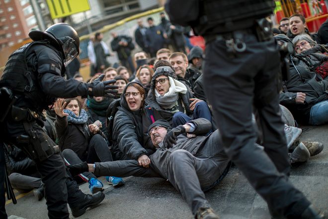 Барселоны замыг хаасан тусгаар тогтнолын төлөө тэмцэгчид цагдаагийнхантай мөргөлджээ.