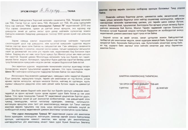 Ойрноос “Улс гэрээ тохинуулах Түмний 76” гэх хөдөлгөөн буй болоод гишүүдээ гурван үе шаттай элсүүлж байгаа сурагтай. Социал сүлжээгээр алдаршсаныг нь бүртгэж аваад захидал гардуулсны нэг нь надад хаяглажээ. Манайхны цөсийг хөөргөсөн “Нэр дэвшүүлнэ” гэх сүрлэг үгс дотор нь явж байна.