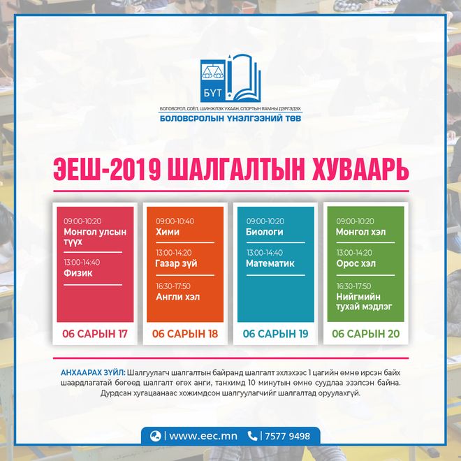 Эргэн сануулахад, ЭЕШ-ыг зургадугаар сарын 17-20-нд дөрвөн өдөр зохион байгуулахаар товлосон юм.