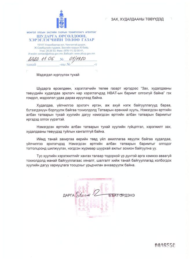 Шударга өрсөлдөөн хэрэглэгчийн төлөө газраас зах, худалдааны төвүүдэд мэдэгдэл хүргүүлжээ. Учир нь иргэдээс зах, худалдааны төвд үйл ажиллагаа явуулж буй газрууд НӨАТ-ын баримт өгөхгүй байгаа гомдол ихээр ирж буйтай холбоотой аж. Мэдэгдлийн дагуу тодорхой үр дүнтэй арга хэмжээ авахгүй бол хуулийн дагуу торгууль ногдуулах гэнэ.