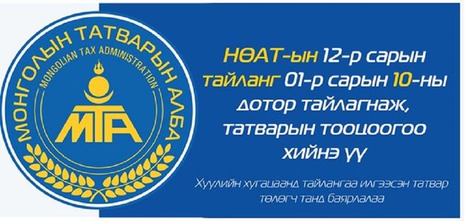 Татвар төлөгч та бүхэн Монголын татварын албаны Цахим татварын нэгдсэн систем etax.mta.mn мөн татварын зөвлөгөө өгөх 1800-1288 утсанд хандаж, цахимаар үйлчлүүлэхийг Татварын ерөнхий газраас уриаллаа.