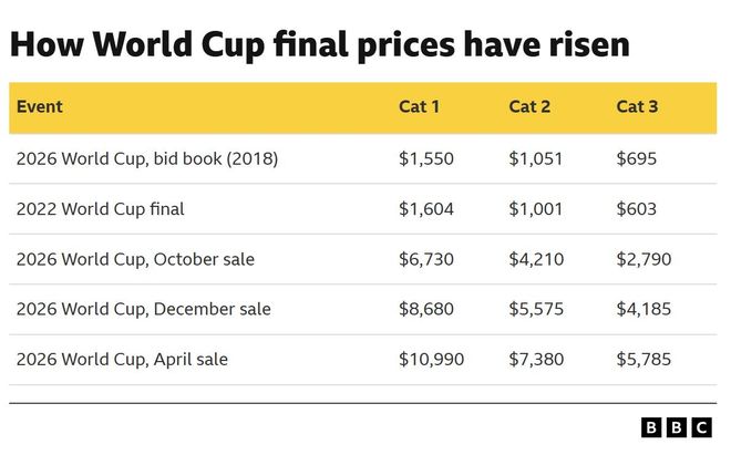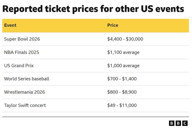 Анх АНУ, Канад, Мексик улсуудын хамтарсан саналд финалын тасалбарын дээд үнэ 1550 ам.доллар байхаар тусгагдсан ч бодит байдал дээр үнэ эрс өссөн байна. 2022 оны Катарын ДАШТ 2022-ын финалын хамгийн үнэтэй тасалбар 1604 ам.доллар байсан нь энэ удаагийнхаас хавьгүй бага үзүүлэлт юм.