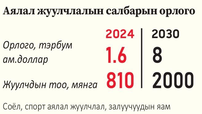 2014 онд манай улс аялал жуулчлалаар 214.7 сая ам.долларын орлого олсон бол гадагшаа өөрсдөө аялахад 472.7 сая ам.доллар зарцуулжээ. Тухайн үед 250 гаруй сая ам.доллароор хэмжигдэж байсан аяллын үйлчилгээний дансны алдагдал 2024 онд нэг тэрбум ам.долларт дөхжээ. Харин энэ оны эхний хагас жилд бид аялал жуулчлалаас 280.9 сая ам.долларын орлого олсон бол гадагш аялахдаа 844.2 сая ам.доллар зарцуулж, аялал жуулчлалын үйлчилгээгээр хүлээсэн алдагдлын хэмжээ 563.3 сая ам.долларт хүрчээ. Аялал жуулчлал нь үл үзэгдэгч экспорт, импорт хийдэг салбар гэдгийг ч эдгээр тоо илтгэнэ.
