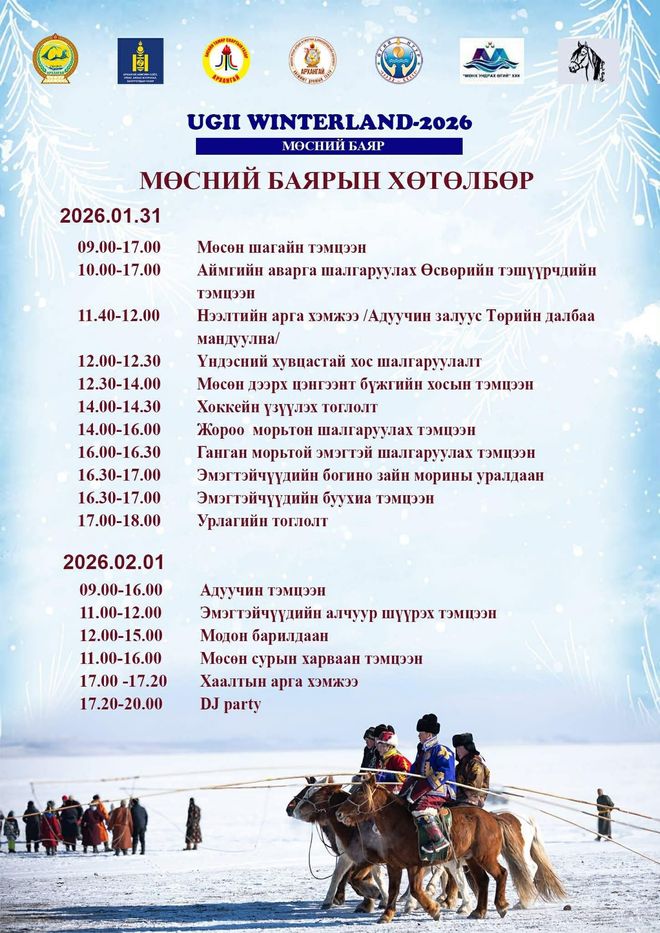 Архангай аймгийн Өгийнуур сумын нутагт орших Өгий нуурт "Ugii Winterland-2026" мөсний баяр нэгдүгээр сарын 31-ээс хоёрдугаар сарын 01-ний өдрүүдэд зохион байгуулагдана.