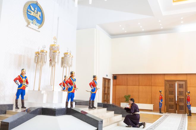 "Сүрээр дарагч" хэмээх Гал морин жилийн сар шинийн баярыг тохиолдуулан Монгол Улсын Ерөнхийлөгч У.Хүрэлсүх, УИХ-ын дарга Н.Учрал, Ерөнхий сайд Г.Занданшатар нар Төрийн их хөлт их цагаан туганд хүндэтгэл үзүүллээ.
