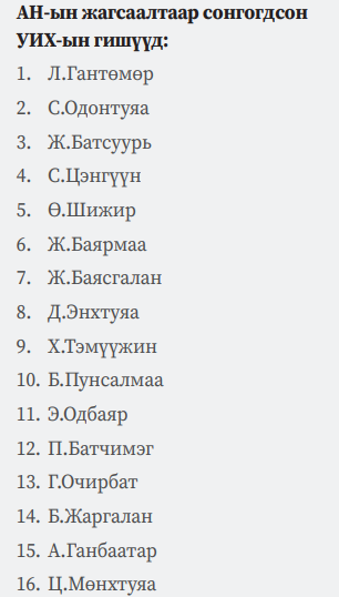 Намын байгууллагад огт ажиллаж байгаагүй, олон нийт байтугай, намынх нь гишүүд ч танихгүй олон хүн МАН-ын “тооноор орж” нэр дэвшээд УИХ-д суучихсан.
