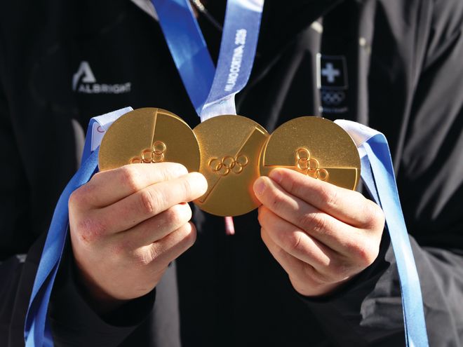 Ид өрнөж буй “Милан-Кортина 2026” наадмын шагналын тавцанд гарч буй тамирчид олимпын түүхэн дэх хамгийн өндөр үнэтэй медалийг гардан авч байна.