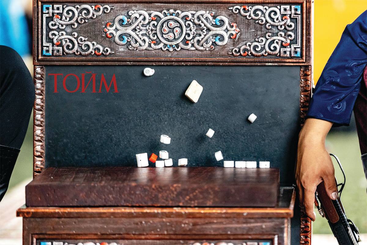 “… Гаадан тэргүүнээ өргөж, мэлмийгээ сунган сөдийн толгойг ширтэхэд салхи хуучин янзаар агаад, чимээ аван сортолзох согооны чих шиг хурууд нь аясаар урагш тэлүүлэн солбилзож чинээндээ хүрээд эрхийн гох зөнгөөрөө имрэгдэн тайлагдаж сум нь нисэн одох агшнаа сарвайн тэнийсэн алганд нь заяа учралын зурааснууд уртсан тодорч, эрхий нь яшил зандан хашлага дээрээ лүгхийн бууж үлдээд, ончрон байсан цэц хуруу нь сөд өвсний дохиж асан хоосон агаарын чиг заан тогтохуйд, маанийн үсэгтэй хувилгаан сум нь хурмаст тэнгэрийг хуйлан одлоо”.