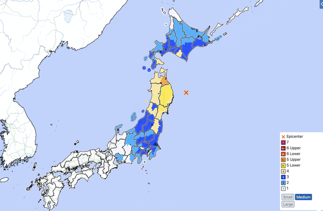 Даваа гарагийн газар хөдлөлт 16:52 цагт Иватэ мужийн эргээс 100 км зайд, 20 км-ийн гүнд болсон бөгөөд Японы Цаг уурын агентлагийн мэдээлснээр Аомори, Иватэ, Мияги мужийн зарим хэсэгт Японы хэмжүүрээр 5-аас 7 баллын хүчтэй мэдрэгдсэн байна.