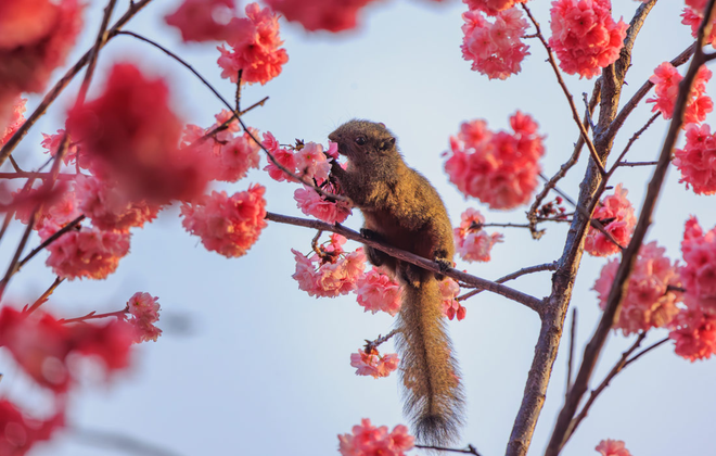 Хятадын Куньмин амьтны хүрээлэнгийн хэрэм интоорын цэцэгс дунд