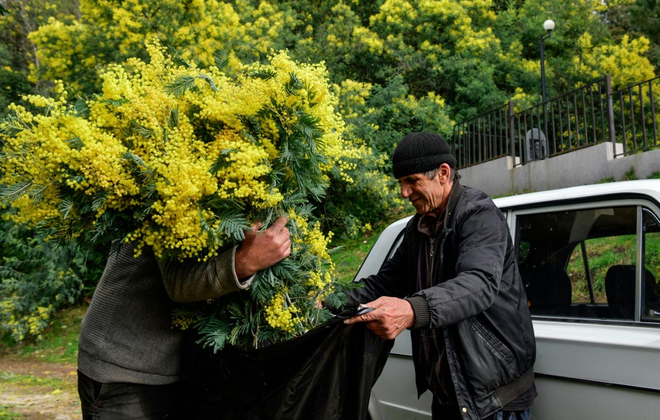 Абхазид мимоза буюу ичимхий цэцэг хурааж байна