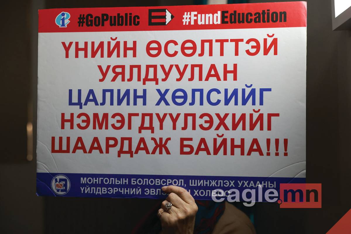 Энэ сарын 16-ны өдрөөс ЕБС, цэцэрлэгийн багш нар цалингаа нэмүүлэх шаардлага тавьж, хугацаагүй ажил хаялт зарласан. Засгийн газар багш нарын цалинг нэмэх боломжит хувилбарыг судалж үзээд, нэгдүгээр сарын 1-нээс 20 хувь, долоодугаар сараас 10 хувь нэмэх боломжтой болохыг мэдэгдсэн. Ингэхдээ төсвийн ерөнхийлөн захирагч буюу сайд, дарга нарын салбар, яамандаа зарцуулдаг төсвөөс танана гэдгээ ч мэдэгдэв. Гэвч энэ санал багш нарт таалагдсангүй. Тэд цалингийн нэмэгдлийг хангалтгүй гэж үзсэн бөгөөд ирэх нэгдүгээр сарыг хүртэл энэ цалингаараа ажиллах боломжгүй гэдгээ ч мэдэгдэв. Ийнхүү багш нарын ажил хаялт хэдий хүртэл үргэлжлэх нь, хүүхдүүдийн суралцах, хөгжих эрх хэчнээн хоног зөрчигдөж, хүүхдийнх нь цэцэрлэг, сургууль ажиллахгүй болсон ээж, аавууд ажилдаа очиж чадахгүй хэр удах нь одоогоор тодорхойгүй байна.