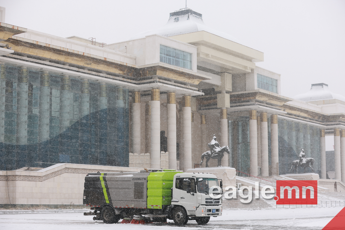 Нийслэлд цас ихээр орсон тул Хот тохижилтын газар халтиргаа гулгаанаас сэргийлж 4 тонн давсыг гудамж, зам талбайд цацаад байна.