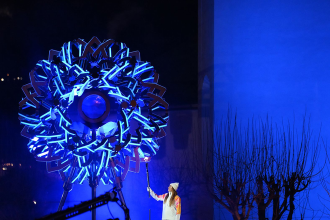 Италийн цанын тамирчин София Гожжа Кортина д’Ампеццод Олимпын галыг асааж байна. Олимпын түүхэнд анх удаа хоёр тулганд нэгэн зэрэг гал асч буй нь энэ юм.