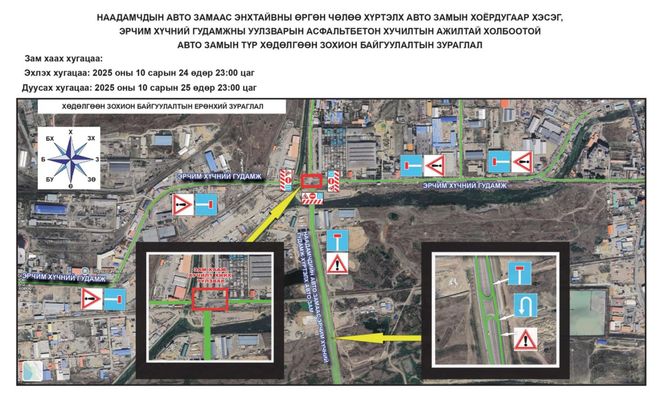 Баянгол дүүргийн 20 дугаар хороо Наадамчдын авто замаас Энхтайваны өргөн чөлөө хүртэлх авто замын хоёрдугаар хэсгийг хааж, засварлана