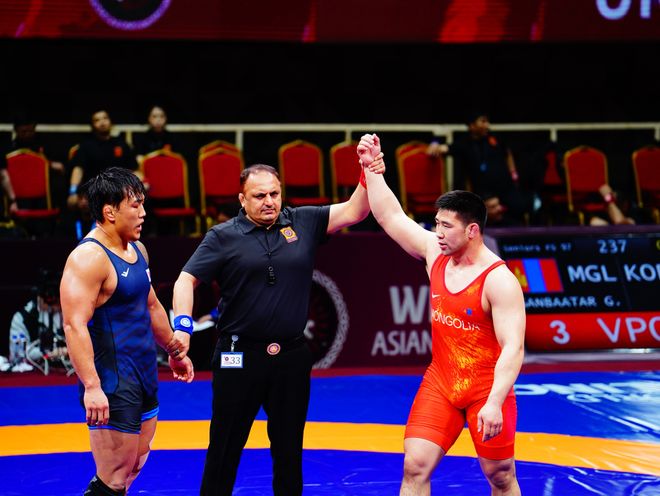 Киргиз улсын Бишкек хотод чөлөөт бөхийн насанд хүрэгчдийн Ази тивийн аварга шалгаруулах тэмцээн болж байна. Өнөөдөр эрэгтэйчүүдийн 57 кг-ын жинд Б.Мөнх-Эрдэнэ, 65 кг-д Б.Зэнээмэдэр, 70 кг-д гавьяат тамирчин Т.Тулга, 79 кг-д О.Сүлдхүү, 97 кг-ын жинд Г.Ганхуяг нар барилдаж байна.