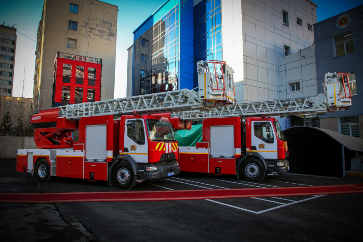 Монгол болон Францын Засгийн газар хооронд байгуулсан санхүүгийн хэлэлцээрийн хүрээнд хэрэгжүүлж байгаа “Онцгой байдлын байгууллагын агаараас эрэн хайх, аврах ангийг чадавхжуулах, гал түймэр унтраах автомашин нийлүүлэх II шатны төсөл”-ийн эхний шатанд гал түймэр унтраах 42 метр урттай автомеханик шатны хоёр, 32 метр урттай автомеханик шатны хоёр машинаар хүч сэлбэсэн билээ.
